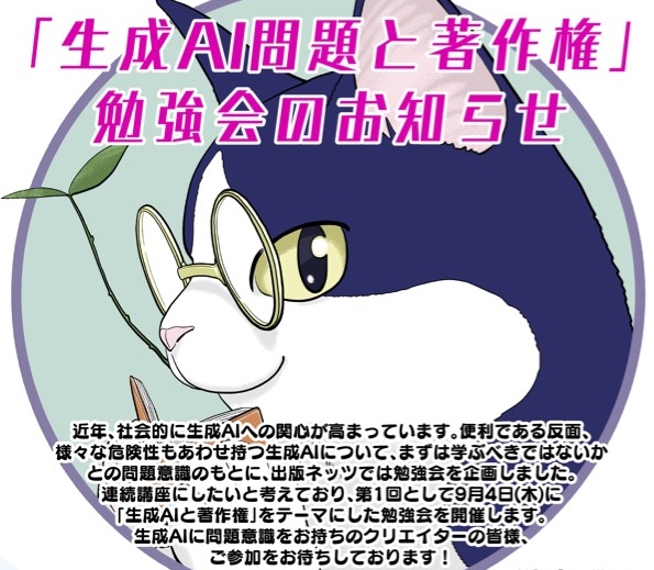連続講座にしたいと考えており、第1回では、「生成AI問題と著作権」をテーマにします。