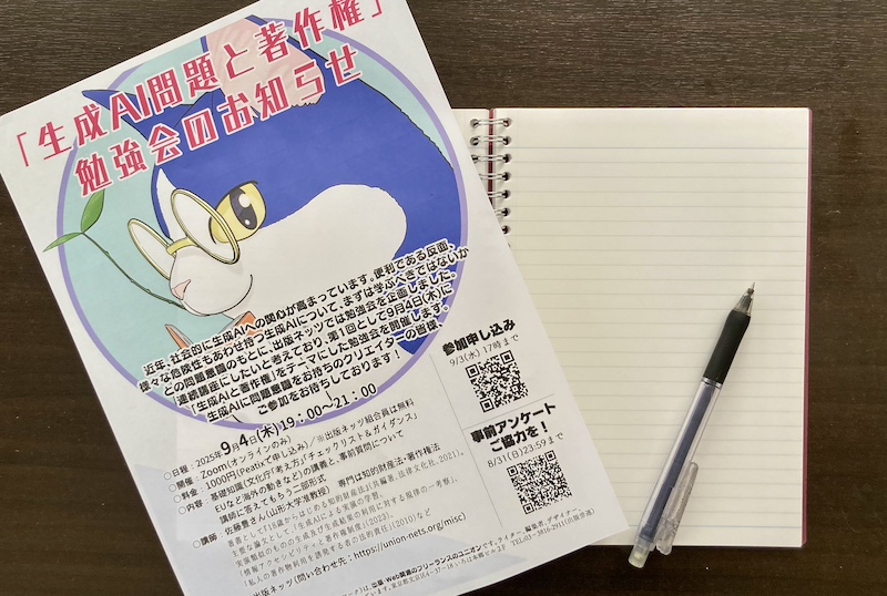2025年9月4日、出版ネッツ主催の「生成AI問題と著作権」勉強会がオンラインにて開催された。