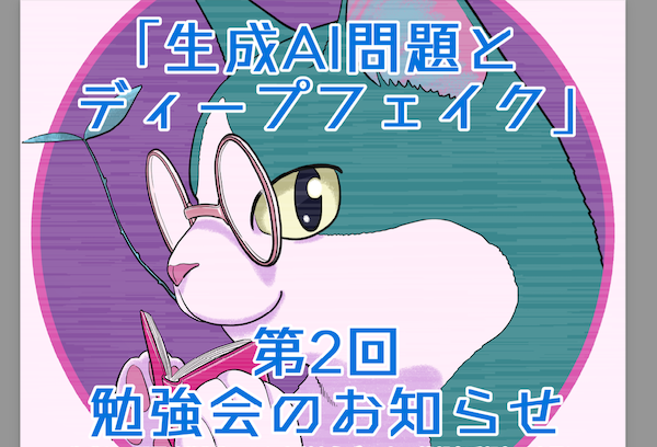 利便性や産業推進の観点が強調されがちな中、生成AIによるフェイクや嫌がらせで公共や人権がおびやかされることはないのか、その現状とこれからについて考える会にしたいと考えています。